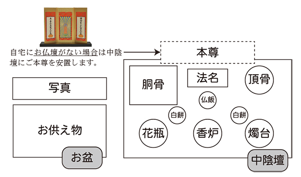 - ※中陰壇は、お内仏(仏壇)の横(左右)または正面に設置してください。